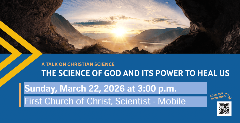 Nikki O’Hagan, a Christian Science Practitioner and member of the Christian Science Board of Lectureship, will give a talk open to all called The Science of God and its Power to Heal Us on Sunday, March 22, at 3 PM, at the First Church of Christ, Scientist, Mobile, Alabama (944 Conti Street, 36604). The talk will explain Jesus’ teachings and healings, giving us new understanding of God and enabling us to leave behind a mistaken and distorted view of ourselves. Childcare will be provided. Call 251-438-1260 for more information.