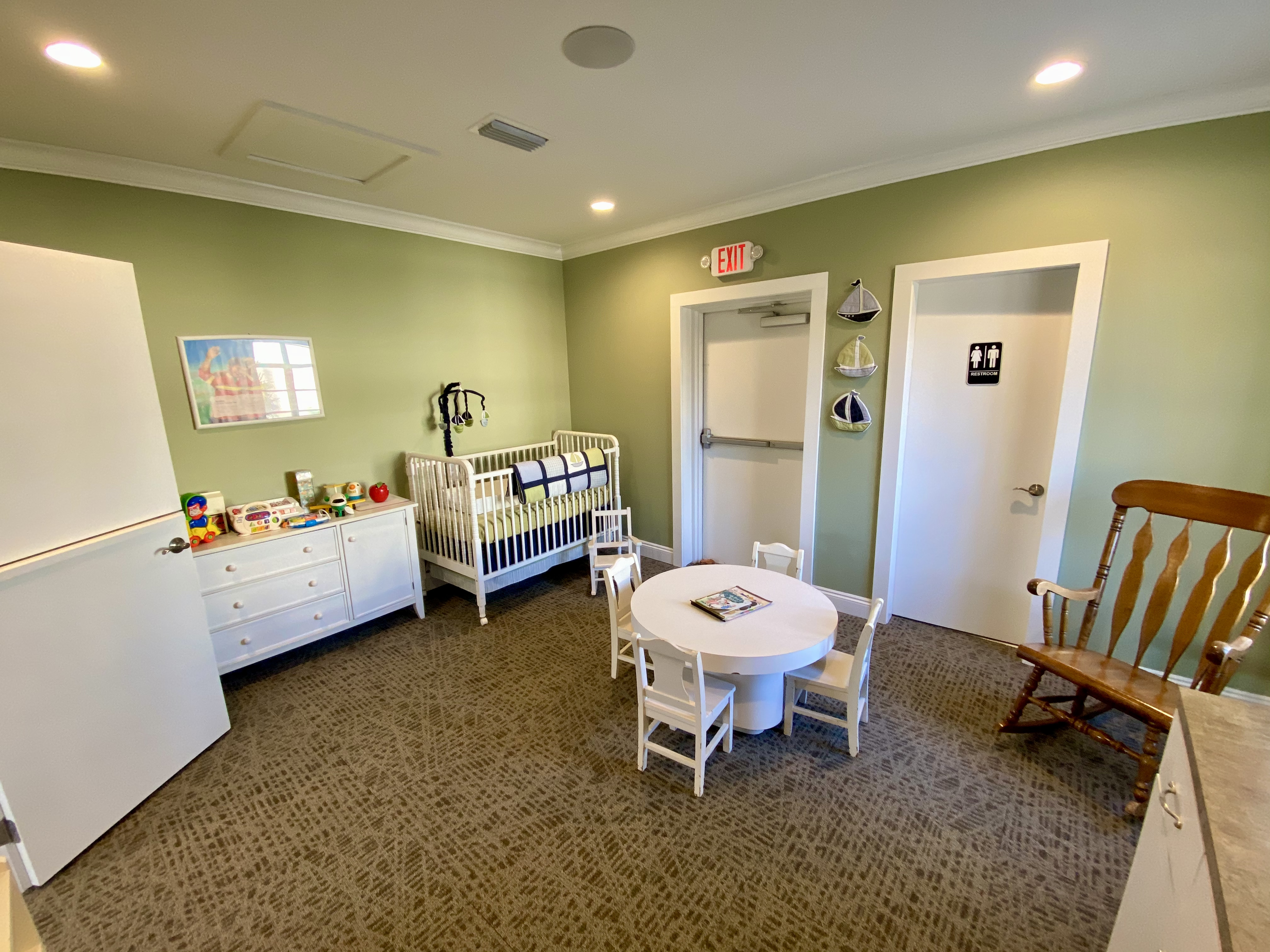 Sunday services are held at 10:30 AM and Wednesday services are held at 7:00 PM. Sunday school is held at 10:30 AM for students up to the age of 20. Childcare is available at all services.
