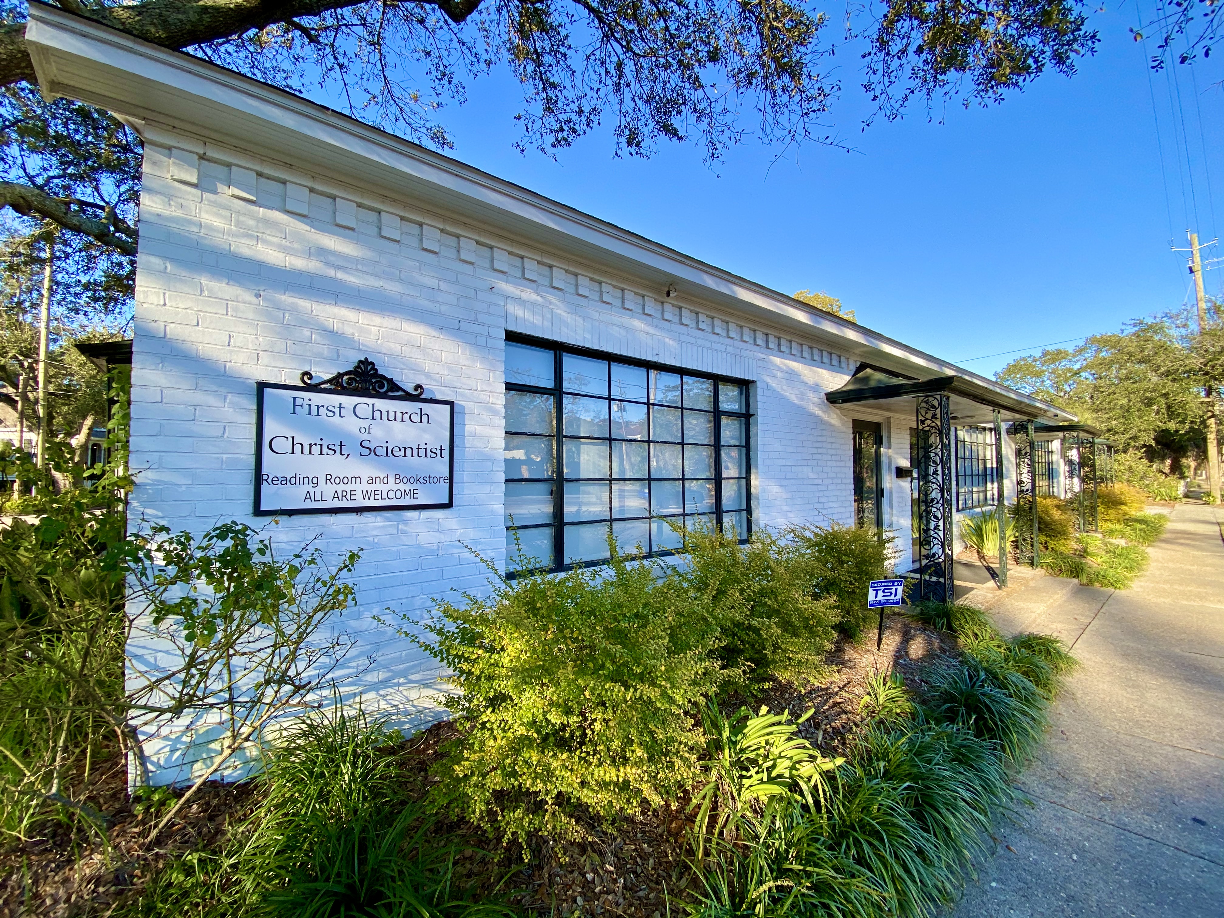 The First Church of Christ, Scientist, Mobile, is located in the city’s Old Dauphin Way historic district, which is know for its large oak trees and historic homes.